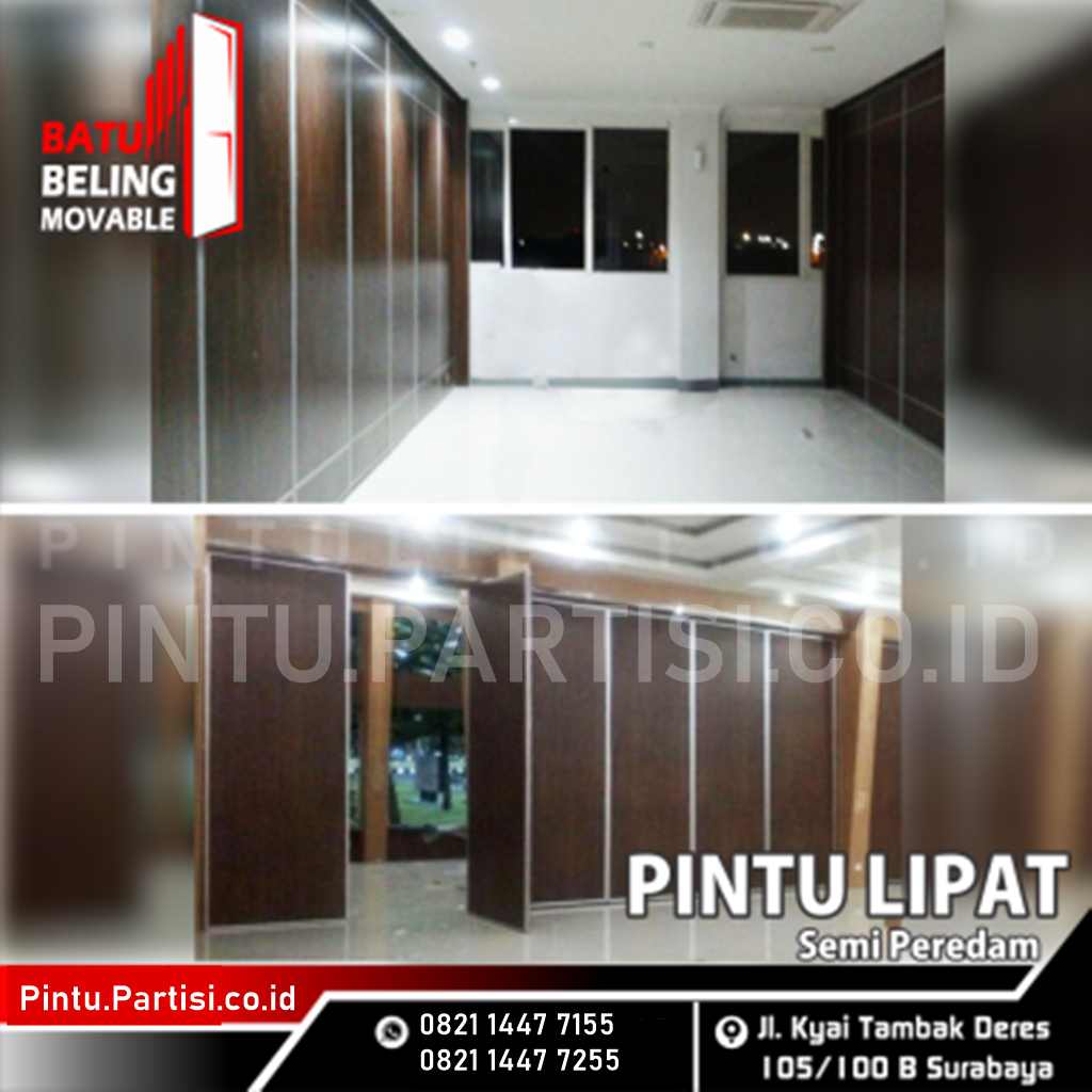 Pintu lipat yang sudah dilengkapi dengan sistem peredam dan mampu memberikan privasi lebih dengan dukungan customisasi sesuai kebutuhan pelanggan.